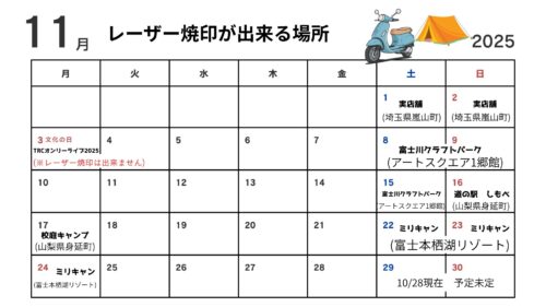 11月のレーザー焼印をお受けしている場所のご案内です。