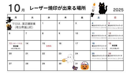 レーザー焼印は、実店舗、出張所、イベント出店先にて行っております。